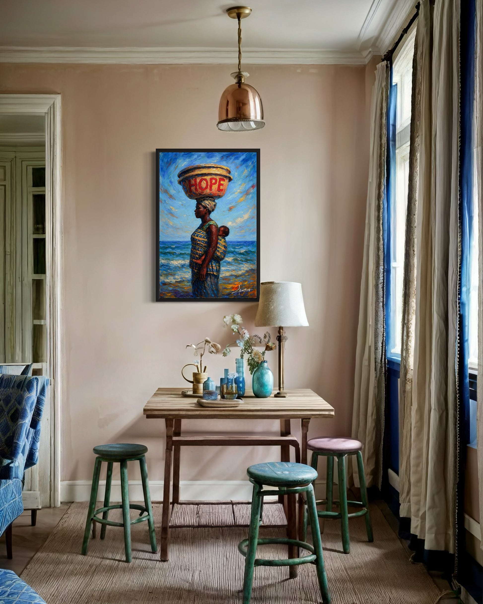 „The Weight of Hope“ von Afrotist – by Edem ist ein tief bewegendes Kunstwerk, das afrikanische Mutterschaft in ihrer ganzen Würde zeigt.